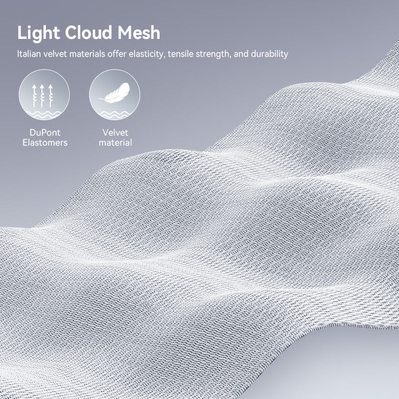 - Cloud-Mesh Upholstery-Soft, breathable Italian velvet mesh for all-day comfort.